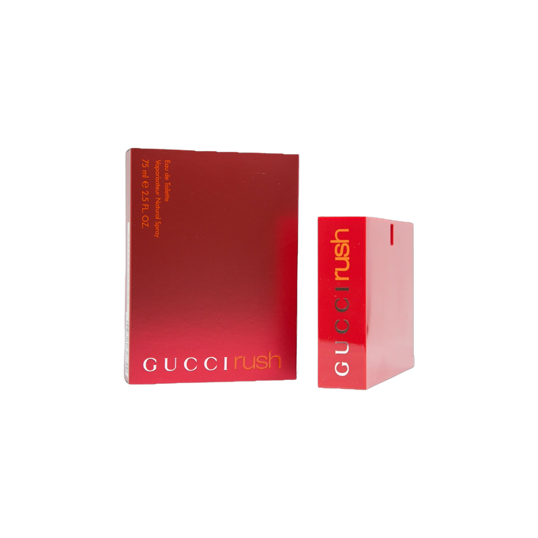 The invigorating top notes of GUCCI RUSH open with a burst of exotic passion fruit, a hint of citrus, and a delicate floral blend that immediately draws you in. The refreshing sweetness of peach adds an uplifting brightness, setting the stage for the boldness that follows.