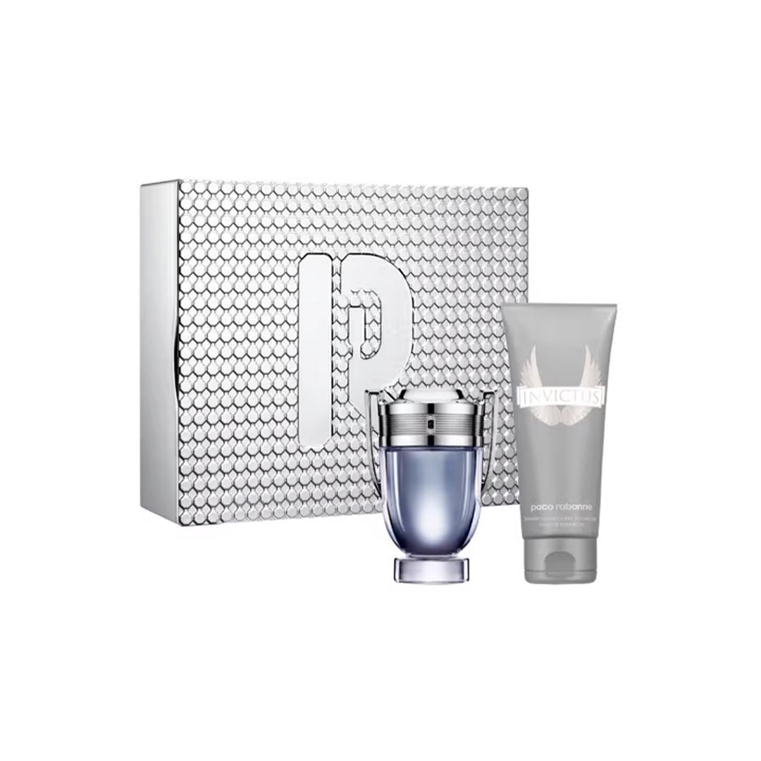 Step into victory with the Invictus Set, combining the dynamic Invictus Eau de Toilette (100 ml) and a versatile All-Over Shampoo (100 ml) for hair and body. Designed for the modern champion, Invictus is a fresh and powerful scent that captures the energy of competition and the thrill of success. The perfect gift or personal indulgence for men who strive for greatness in every arena.